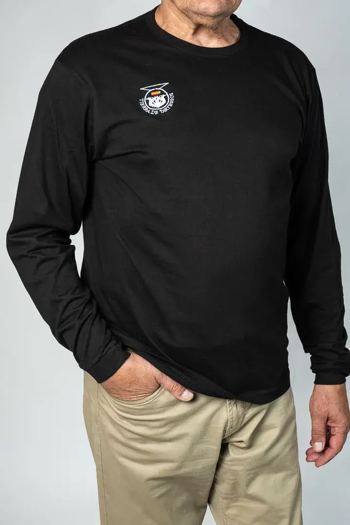 No esperes más para renovar tu armario con piezas exclusivas. ¡Esta camiseta manga larga negra Tierra de Tartessos es para ti!