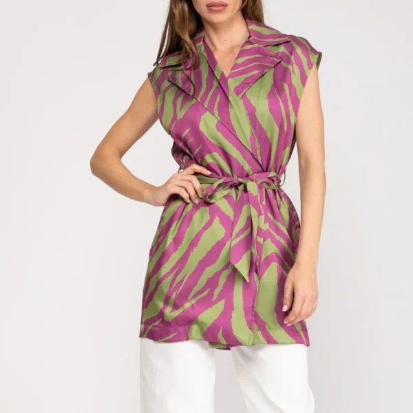Este Chaleco mujer cinturon Buganvilla de edición limitada combina sofisticación tartésica y versatilidad